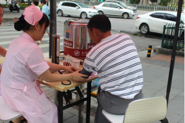 长沙华山白癜风医院免费为市民提供测量血压服务