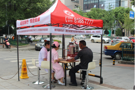 7月份以来,“烤炉”长沙气温居高不下,市民中暑现象时有发生,为此,长沙华山白癜风医院特别开展“免费为市民送清凉”活动,医院在门诊大楼前设立便民服务点,为广大市民提供特制夏日防暑凉茶,让过往的市民在炎炎夏日获得一份清凉。