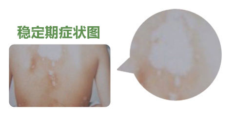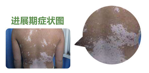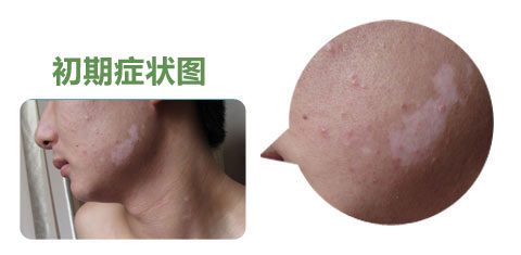 【早期症状】:发病初期,其发病部位白斑的数目不定,可局限于身体某部或分布在某一神经节段,白斑自行消失者极少。大多数病例往往逐渐增 多扩大,相邻白斑可相互融合而连成不规则的大片,泛发全身,有时正常皮肤残留在白斑之中,以致被误视为色素沉着。