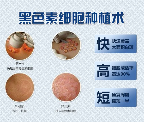 4.提高免疫功能抗复发。 黑色素细胞移植能提高局部免疫功能,自然生长黑色素,自然保护黑色素细胞,以达到不复发的效果。